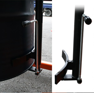 Móc cố định đáy phuy có chốt cong, chốt này sẽ giữ thùng chắc chắn khi xe nâng quay đổ phuy thực hiện thao tác xoay.